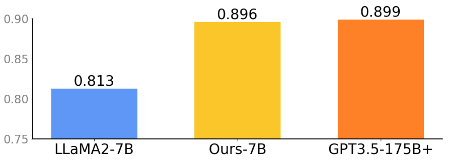 为了实现与 GPT-3.5 相当的性能,本文采用instruction fine-tuning策略,将LLaMA2-7B转化为一个指令跟随模型。由于 LP-MusicCaps 和 WavCaps 数据集是由GPT-3.5构造的数据集,然后使用PEFT【1】(尤其是LoRA)对LLaMA2-7B模型进行了微调。