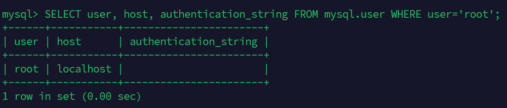 SELECT user, host, plugin FROM mysql.user WHERE user='root';
