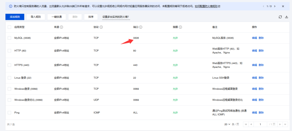 # 或者简单粗暴点:对所有 IP 开放 3306(不太推荐)